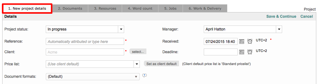 Translation Domains will appear on the Project Details Tab within existing projects or the New Project Details Tab for new projects, as shown below: