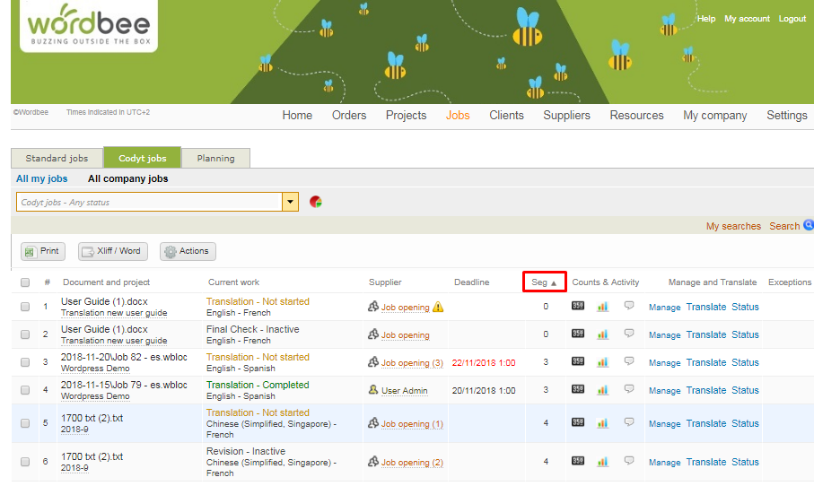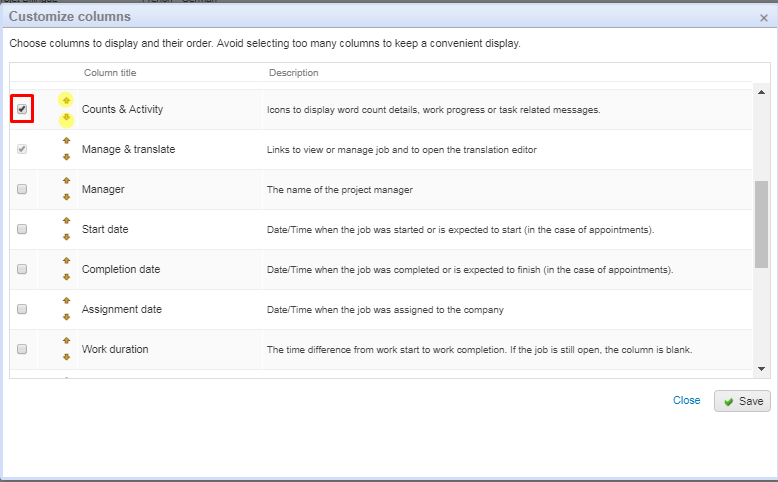 Wordbee Translator is a flexible working space, for management as well as for linguistic work. This means each user can adapt the view of their platform to suit their needs. Depending on your duties or of the requirements of everyday tasks, you would like to show more or less information in your platform, that is why adjusting the layout to only show the relevant information becomes handy.