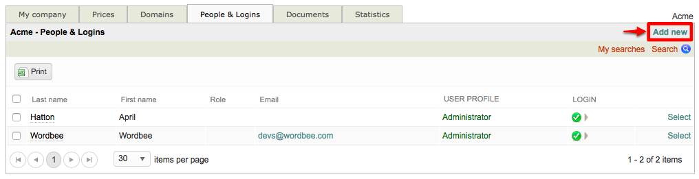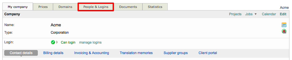 For example, if the individual is an inhouse user, you will need to click on My company and then click on the People & Logins Tab to make changes.