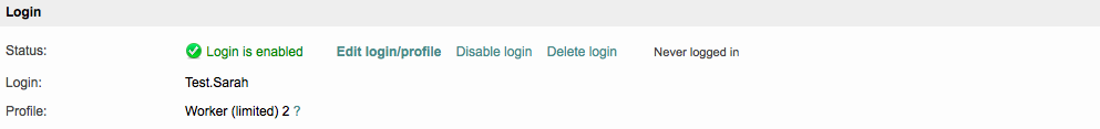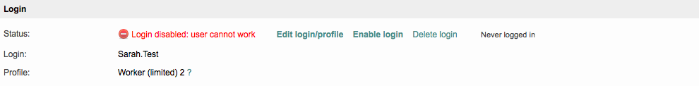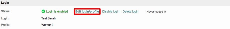 If the users' login is currently enabled, you will be able to alter their user profile by clicking on Edit login/profile.