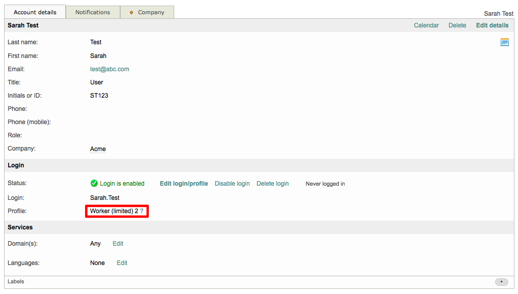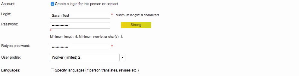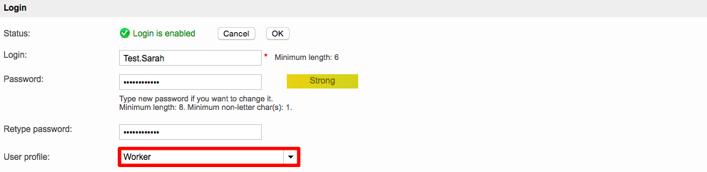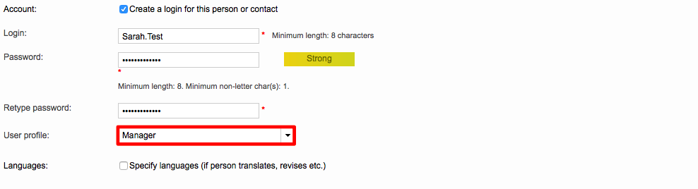 If the account is currently disabled, you are still able to assign a different profile; however, the user will not be able to log into Wordbee Translator until their login has been enabled.