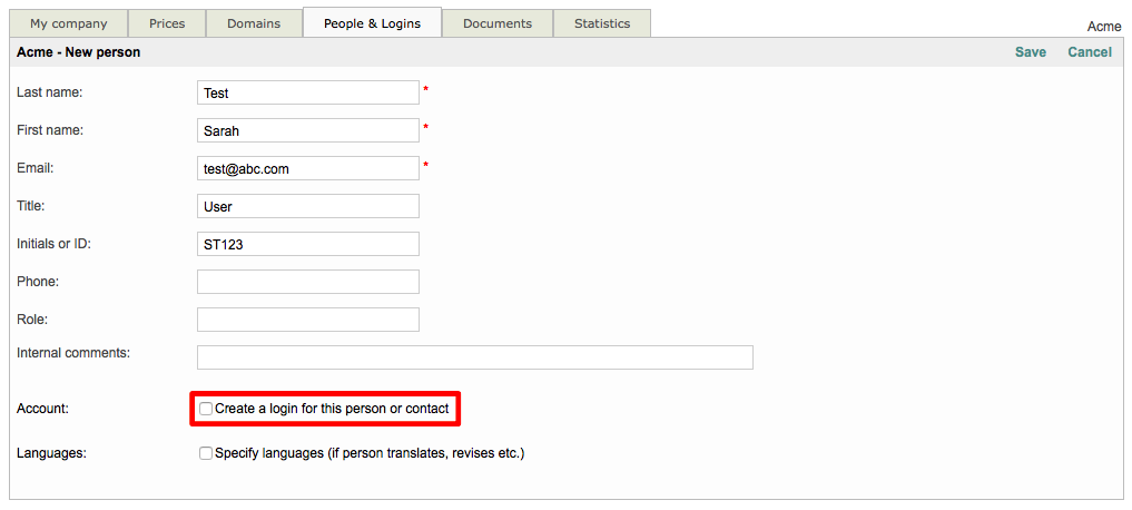 Then click on Save in the upper right corner to add the user to Wordbee Translator.