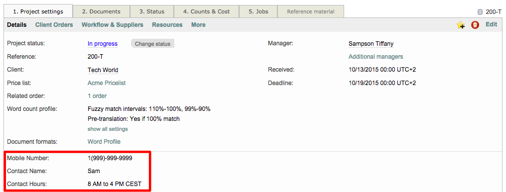 Once more than one field has been configured for a project, order, etc., you may change the display order for these fields when viewing the information or making changes within the system. For example, let's say you have three additional custom fields for projects that include: