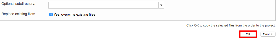 You can also choose to replace existing files or to not overwrite them. This option is checked by default and recommended to be enabled for any new order submitted through the classic order form. Click OK to finish copying the files to the new CoDyt project.