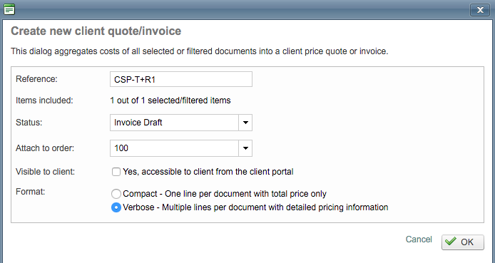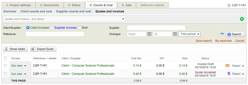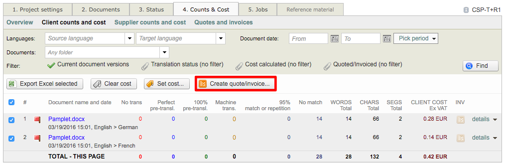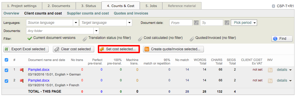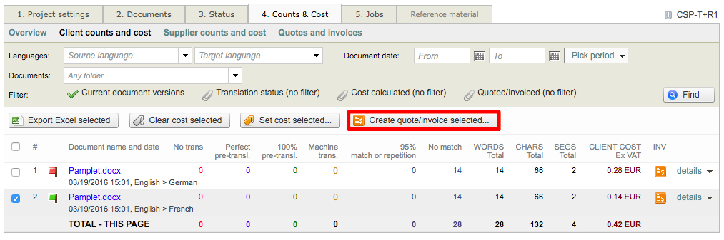 To learn more about setting the cost of selected documents, please see the Client costs in Codyt projects page in the Managing Quotes & Invoices section.