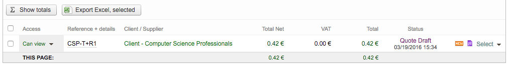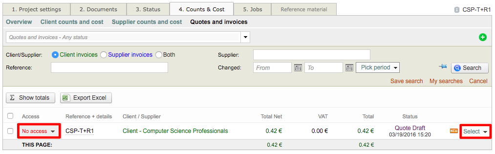 You will be redirected to Quotes and Invoices on the Counts & Cost Tab. In the example below the access permissions have been changed to "Can View". You can choose to provide no access or even allow the invoice to be edited.