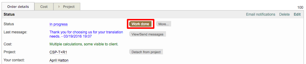 After the above steps have been completed, the order can be marked as done. This informs the client that the work is completed and allows them to review/approve the finalised documents.