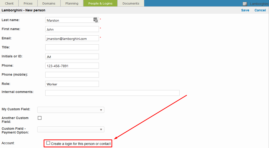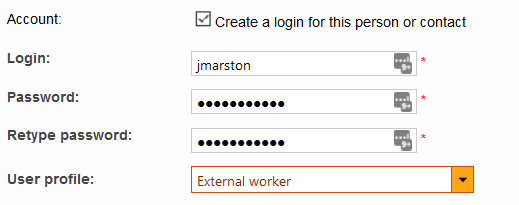 If the client is an agency or another provider who manages several individuals for job assignment and completion, it is beneficial to create logins for the client portal. The primary contact should have external client or external client and worker access rights and additional people requiring a login should be an external worker.
