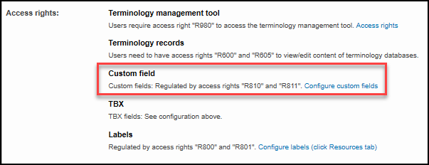 Select the resource type where you want the custom field to appear: Translation/Project memories, Terminology databases, Both.