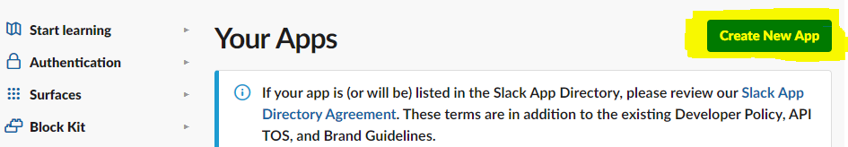 On the next screen, click Create New App: