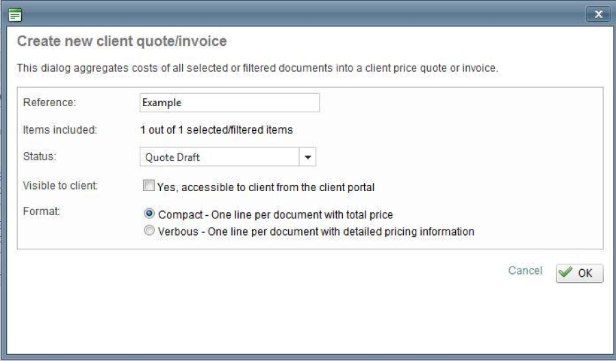 You will reach a new window called Create new client quote/invoice (or supplier if you are in Supplier counts and cost):