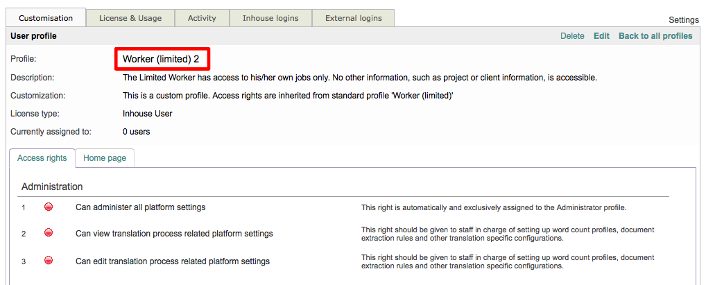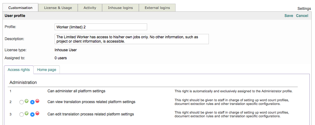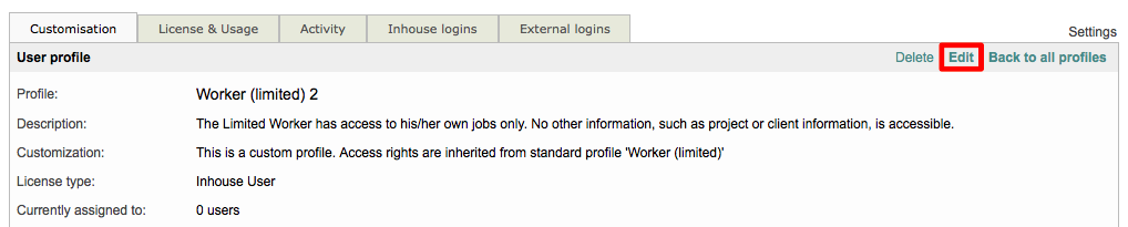 For more information about customising access right settings for a user profile, please see the Editing the Access Rights for different user profiles page.