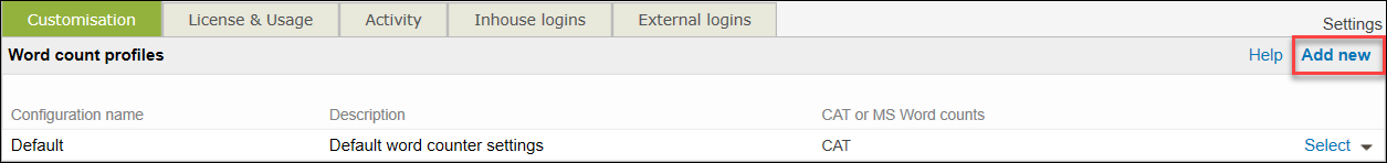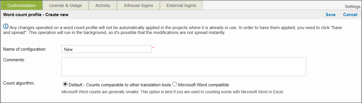 In Wordbee you can create your own custom word count profile that you can assign to projects. To create a new word count profile: