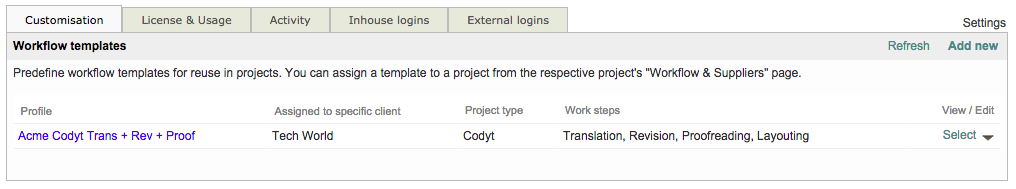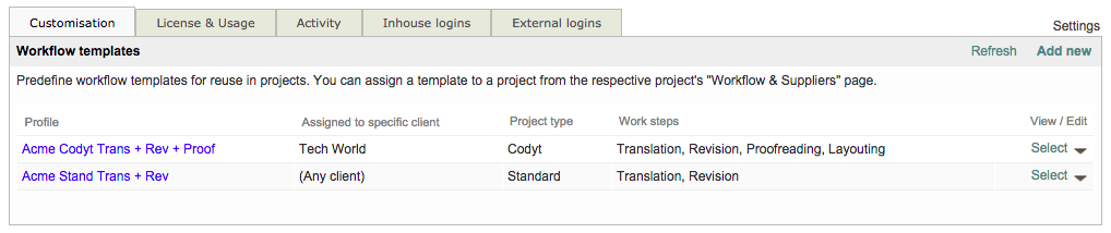 The list of templates is now an available selection for client projects or when configuring project workflow in the New Order Form.