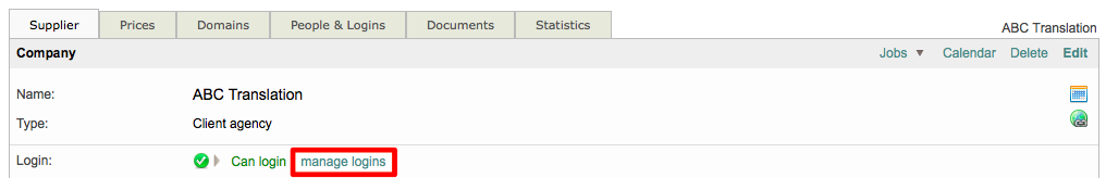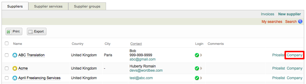In order to create an external login for a specific supplier, you have to access a different part of the system. This can be done by clicking on Suppliers at the top of the screen to view a list of current suppliers in the system.
