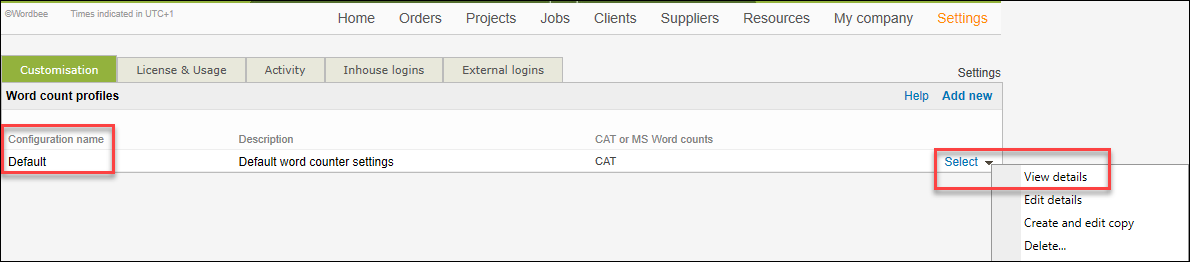 Use Save and spread if you want to apply the changes to projects where the default word count settings are already in use! This means that the modified settings will be applied to new documents marked for online translation in the running project.