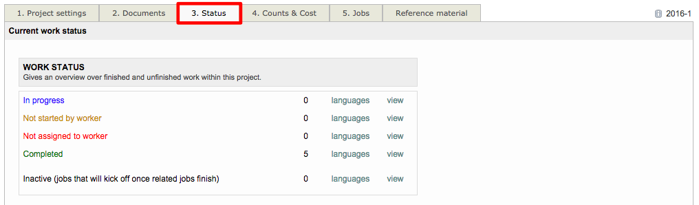 - Click on the Status Tab of the project.