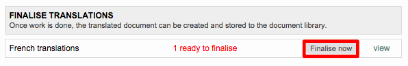 - Under Finalise translations, click on Finalise now.