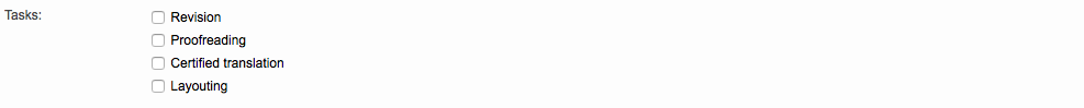 A task category may be enabled or disabled. Enabled categories appear within the Tasks option for a new or existing project within Wordbee Translator.