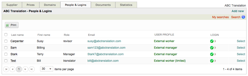 If you click on the Company Tab, you will be redirected to that specific supplier's external logins as shown below: