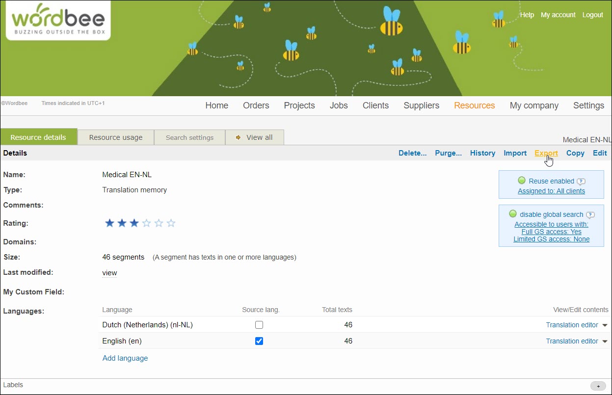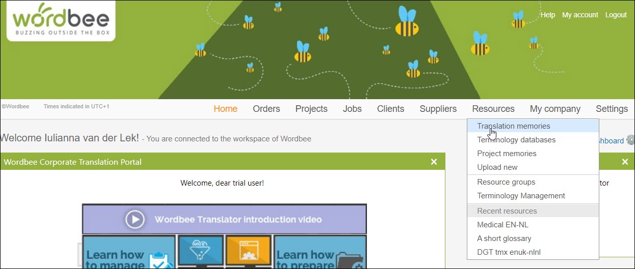 Step 1. Go to Resources and select the type of resource you would like to export, translation memories or terminology databases.