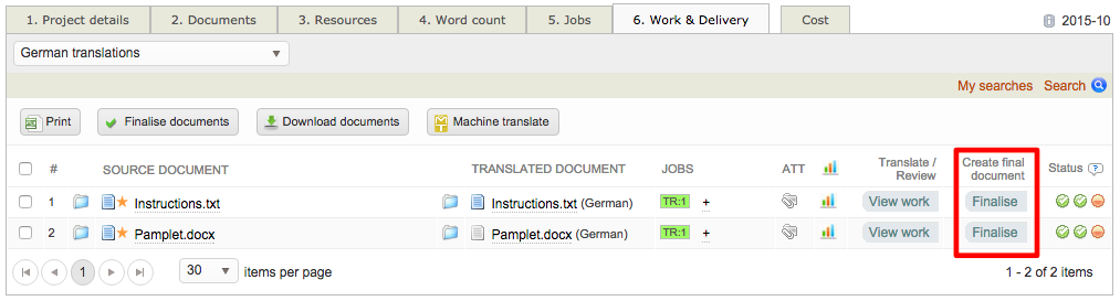 Once every document for a job has been completed, it is time to finalise the translations so they can be sent to the client.