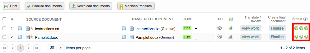 The second indicates that the translated document has been checked in the translation interface and that there are no errors.