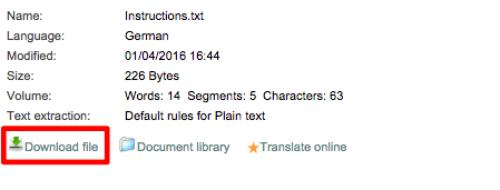 Under TRANSLATED DOCUMENT, click on the document and then on Download file.