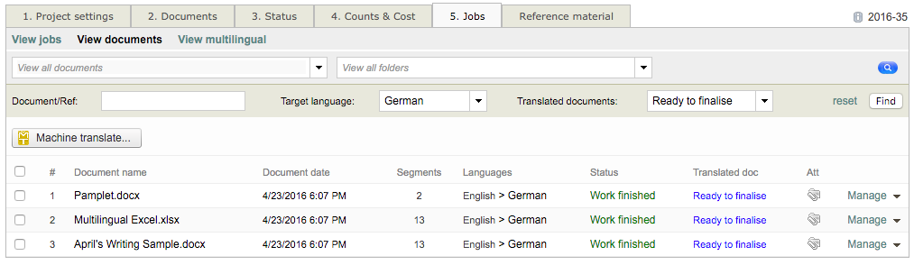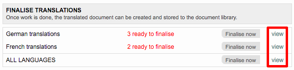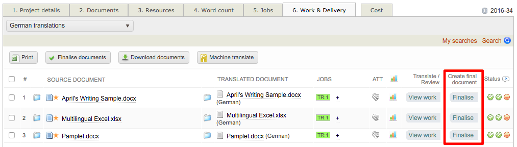 Please see the following sections to learn more about finalising and exporting/downloading translated documents for completed projects: