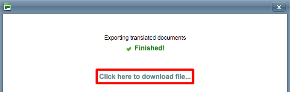 Once the export has finished, you will be able to download the ZIP file containing all your documents. To do so, click on the Click here to download file... option.