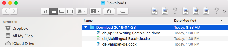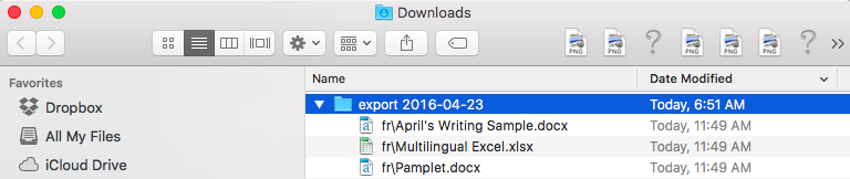 After unzipping the file, you can expand the parent folder and will be able to view each translated document as shown below: