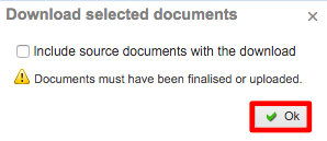 Next, an option is provided to include the source documents as part of the download. By default, this option is disabled, but can enabled be by ticking the checkbox next to option. Click on Ok to finish.