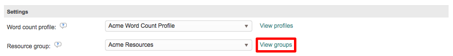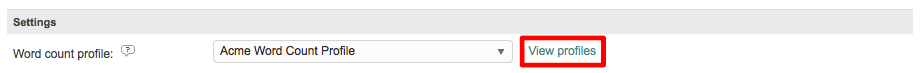 To choose a specific word count profile for the option, click on the drop-down menu and make a selection. If you cannot find the right profile or one has not been created, click on View Profiles to see current word count profiles in the system. In this example, the Acme Word Count Profile has been chosen.