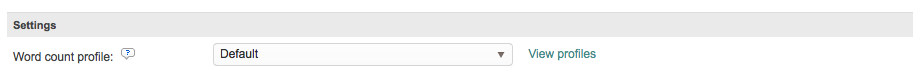 Within the Settings section, you have the ability to choose a Word Count Profile for counting the number of words per file and determining what will not be or is included within the word count. If no profile is chosen, then a Default profile will be used.