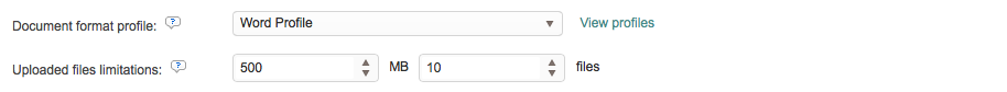 A document format profile may contain multiple formats such as Word, XML, PDF, etc. and text extraction rules may be defined for each.The client will be able to choose what file type applies to each uploaded file when multiple file types are present in the profile. If none is selected, then the system will use a Default Profile.