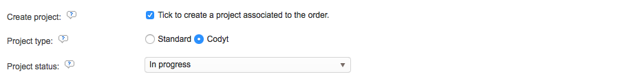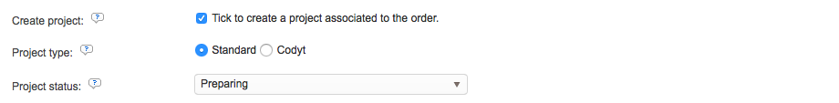 Next, you may configure whether or not a project will automatically be created when the order is submitted. By default, this option is not enabled, as shown below:
