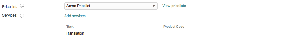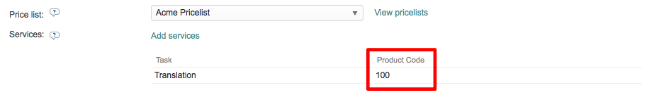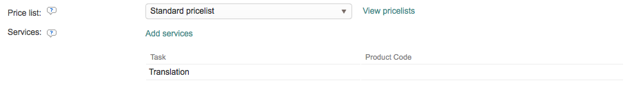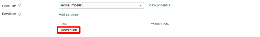As you can see, the Translation Task now has a Product Code on the configuration. If additional tasks were added, they would appear on a seperate line below the first task with their own product code (if entered).