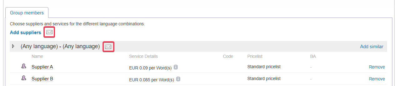 Send a message to suppliers within a group