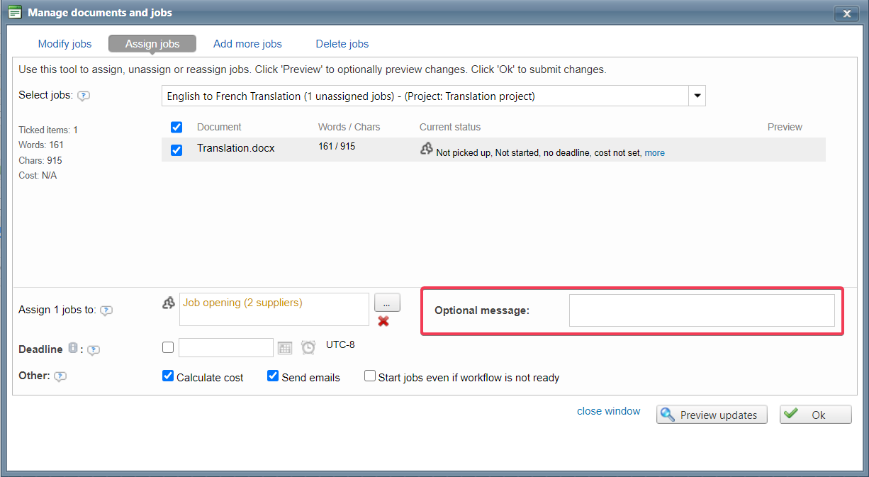 Send messages within projects and jobs