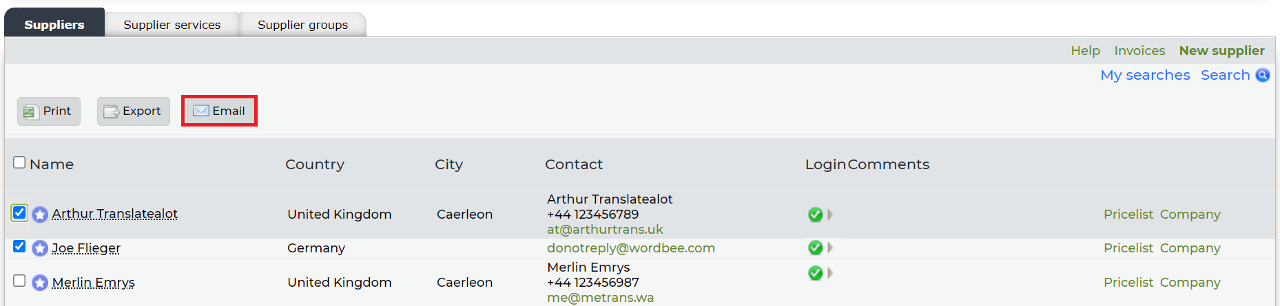 How can I communicate with suppliers?