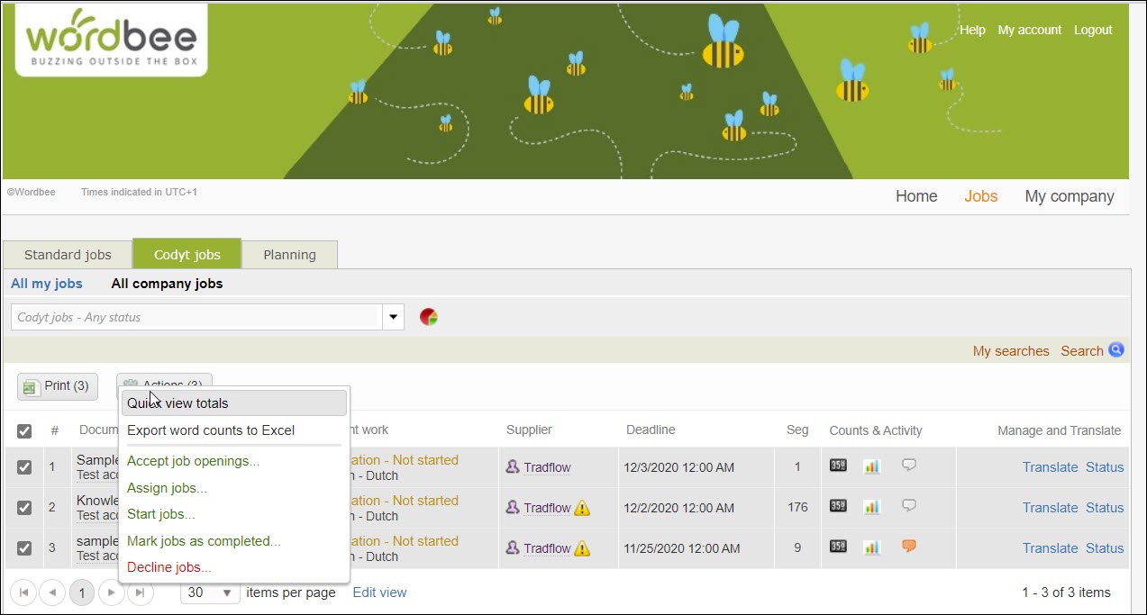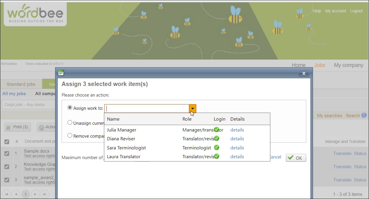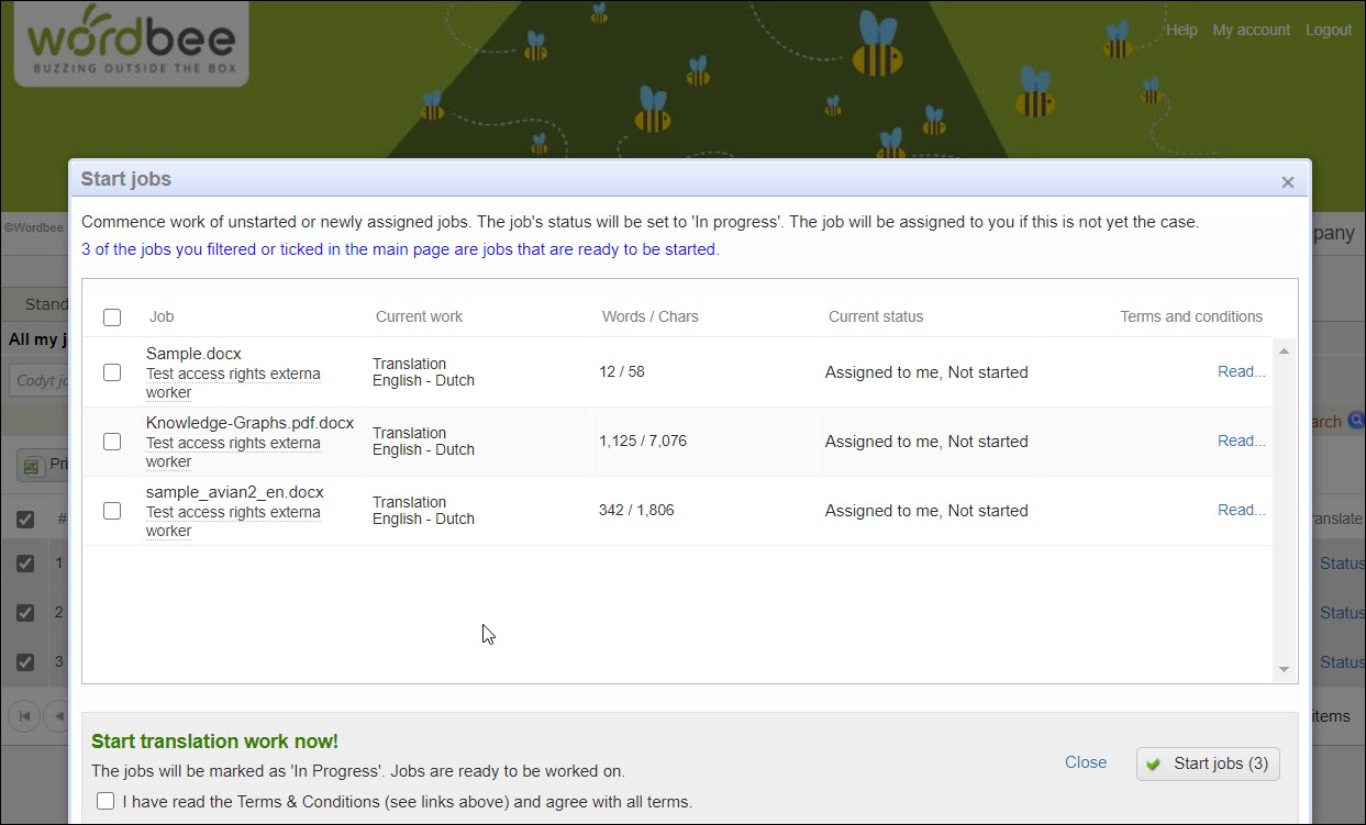 In Wordbee Translator, you can accept and assign jobs individually, one by one, or in a batch, by selecting all the jobs at once.