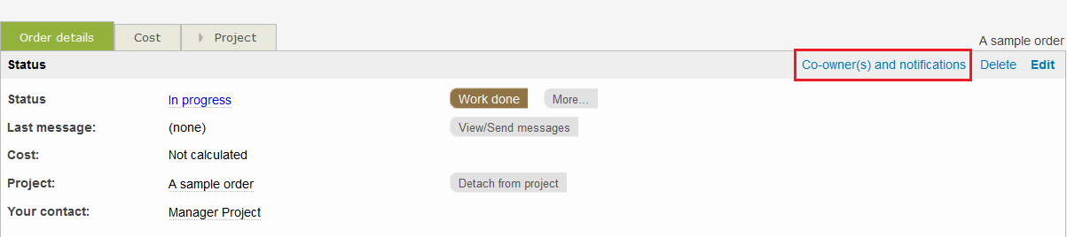 You thought you were handling the order from start to finish, but now you are going on holiday and need to delegate the management of a request to somebody else. This will not be a problem because you can, at any moment in time, add a co-owner by simply editing the order. Follow the steps below: