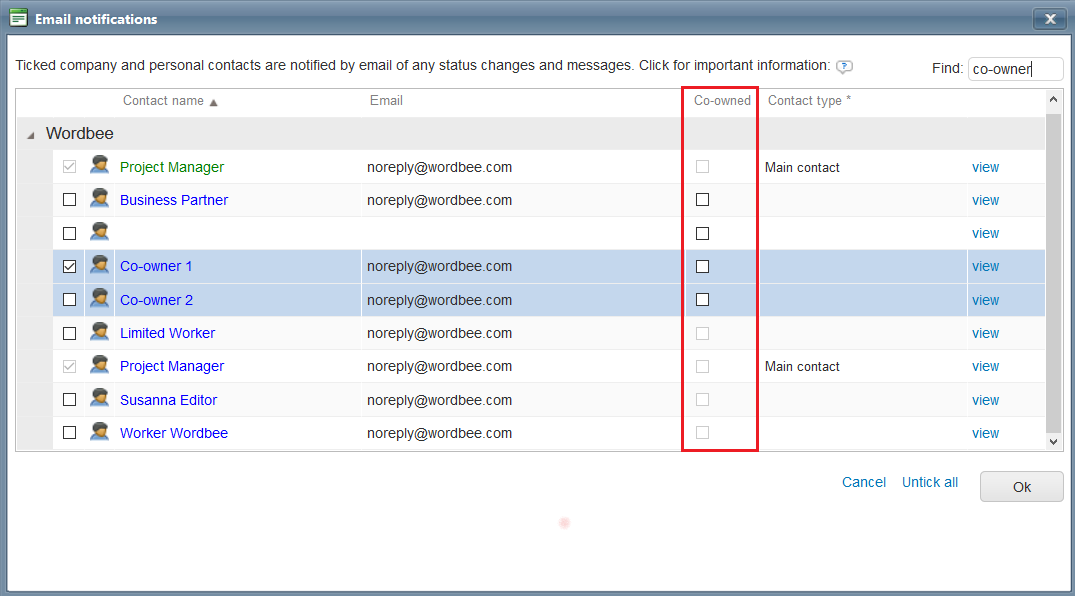 Prerequisite: co-owner users MUST belong to the same company as the requester.