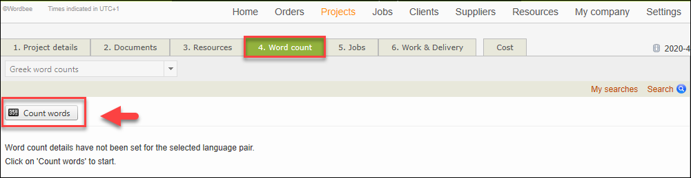 Step 2. After you have selected the documents and attached your linguistic resources to the project, you need to assign a word count profile. Go to the Word count tab and click on the Count words icon.