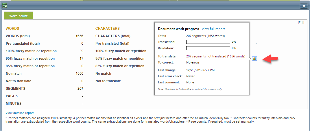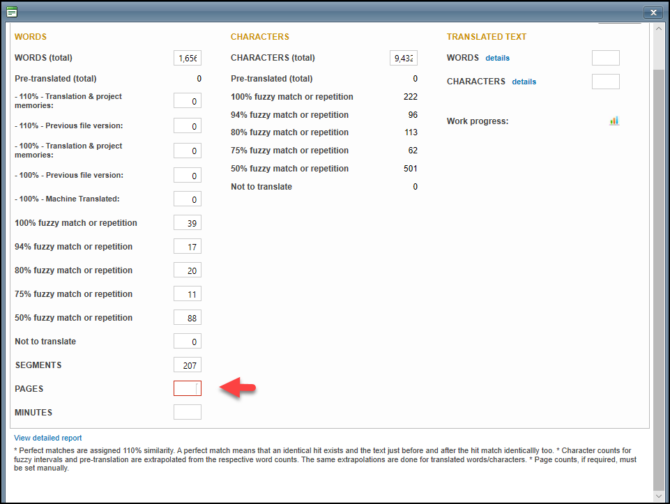 Characters | Character counts for fuzzy intervals and pre-translation are extrapolated from the respective word counts. |