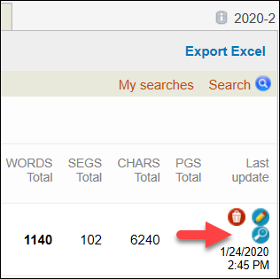 To view or edit the Word Count statistics of the documents in your projects, use the icons displayed in the last column of the analysis.