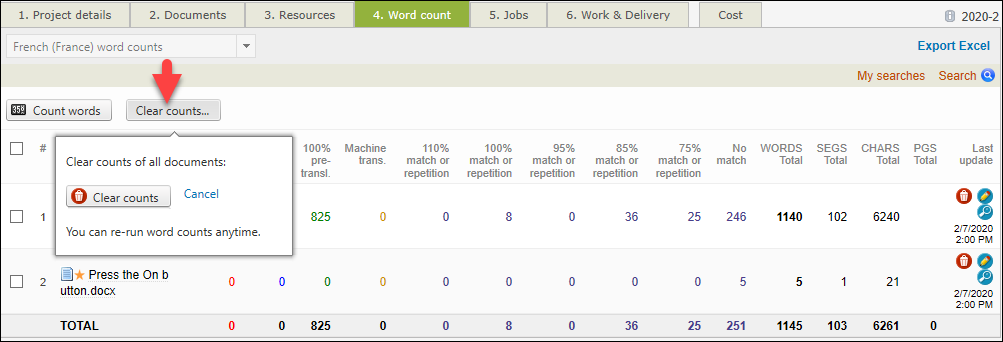 It is recommended that you change the word count profile of a running project only after all the current jobs have been completed! This way the new settings do not impact the costs and pre-translation settings of the old documents.
