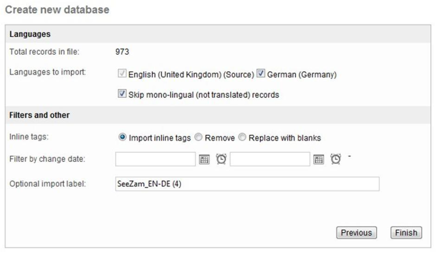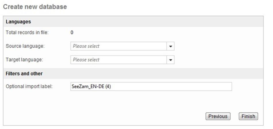 Choose the source and the target languages and click on Finish.