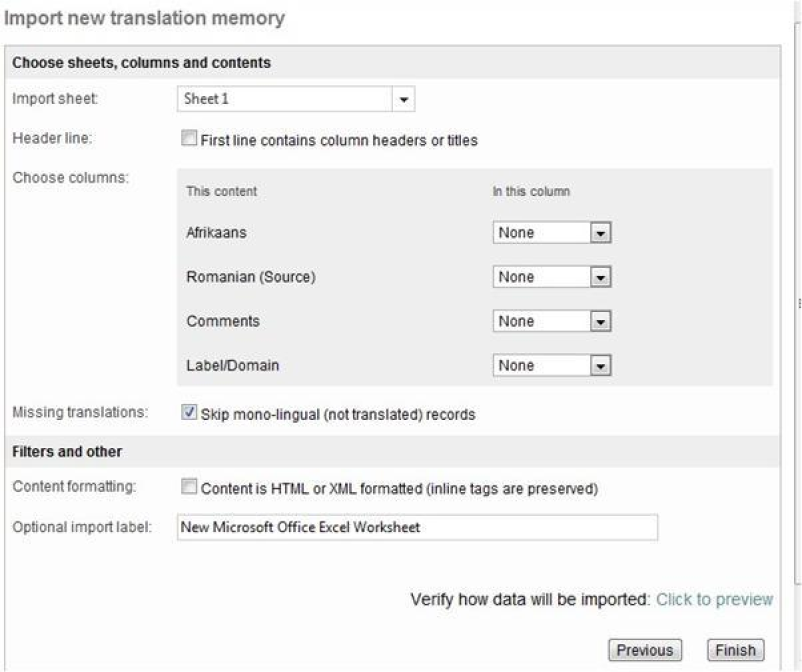 Save the settings used for the Import so you can save time when importing other files with the same characteristics or structure (different languages and comments in the same columns).