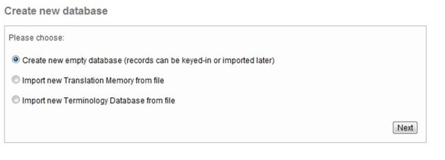 You may want to import your own databases to the system for further use or create empty ones to start gathering and reusing the content of your projects during your platform work.
